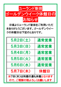 なお、5月7日(木)は、「尾島健康福祉増進センター(利根の湯)」も