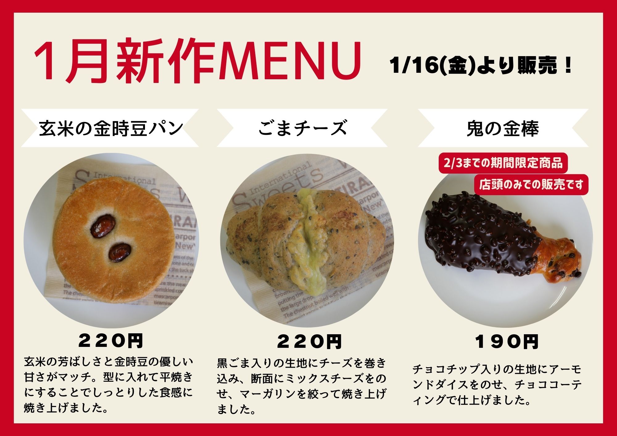 現在の位置 : ホーム > お知らせ > スワンベーカリー1月の新作情報★1月16日(金)発売!